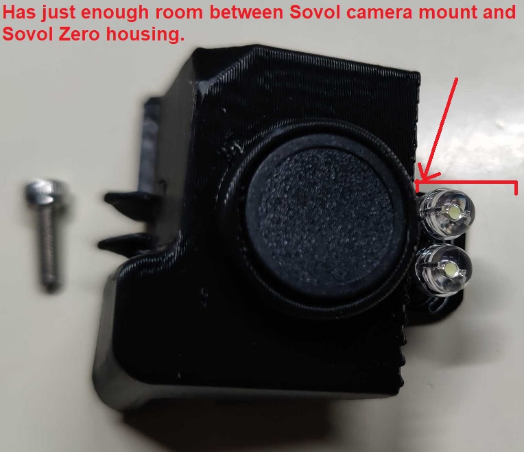 If you are interested, for me with that camera I ended up downloading the Sovol github “camera module.step” file and mirroring on the x axis so I can mount it to the left side opposite of the original camera. If you go this path, save the lens cap from the new camera as it happens to make a nice snug fit into the Sovol Camera mount, cut the lens cap face off, or with cad decrease the diameter of the the inner lens opening on the camera mount. Next find a M3x10mm screw that will fit in the pre-drilled hole of the zero’s frame. Then design a small band to cross over the back of the new camera screwing the band into the two holes in the Sovol Camera mount using the screw that came with the new camera. I was lucky and had a extra screw that will fit for the second hole. Just make sure the band screw holes are thick enough to keep the screws from poking through the front of the Sovol Camera mount. I’m still working on the band to hold the camera in, I’m new to cad so it’s slow going